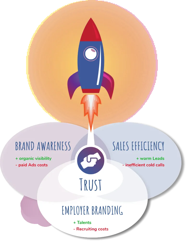 LinkedIn ist mit über 830 Mio Nutzer und Entscheider das grösste und wichtigste Business Netzwerk der Welt und genau dort findest du den Austausch mit deinen heutigen und zukünftigen Kunden. Genau dort kannst du die Vertrauensbasis aufbauen, lange bevor es zum eigentlichen Verkaufsgespräch kommt.